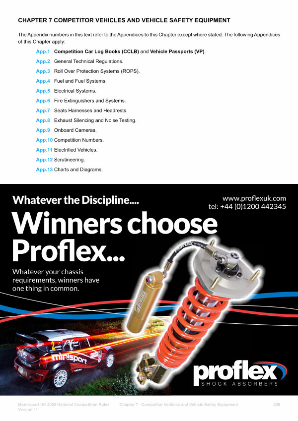 Motorsport UK 2025 National Competition Rules Chapter 7 - Competitor Vehicles and Vehicle Safety Equipment 239