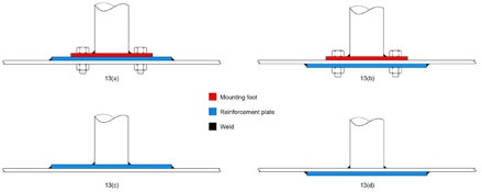 1.5. Have all exhaust outlets terminating behind the mid-point of the wheelbase of the vehicle and within 150mm of the outside of the bodywork periphery in plan view.