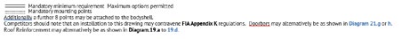 10.9. The anchorage points to the rear should be positioned so that the strap from the shoulder is as near horizontal as possible. It should not be located on the floor directly behind the Driver / Co-Driver .