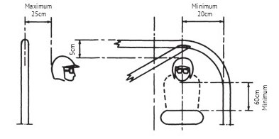 3.3. Measurements will be made at 0.5m from the end of the exhaust pipe with the microphone at an angle of 45° with the exhaust outlet and at a height of 0.5 to 1.0m above the ground.
