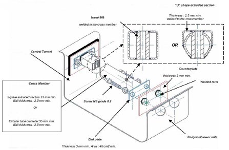 10.1. It is permitted to make a hole in series production seats to allow secure anchoring of seat belts. 10.2. International Events 10.3. All harnesses must be homologated by the FIA and carry their label.