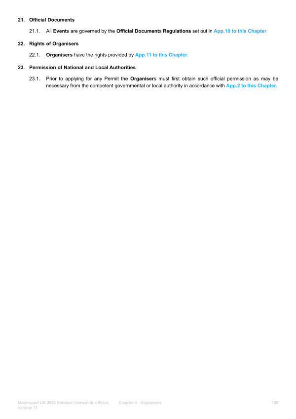 21. Official Documents 21.1. All Events are governed by the Official Documents Regulations set out in App. 10 to this Chapter