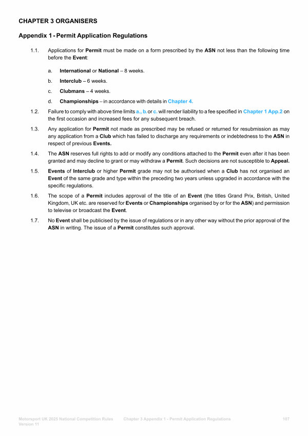 CHAPTER 3 ORGANISERS Appendix 1- Permit Application Regulations