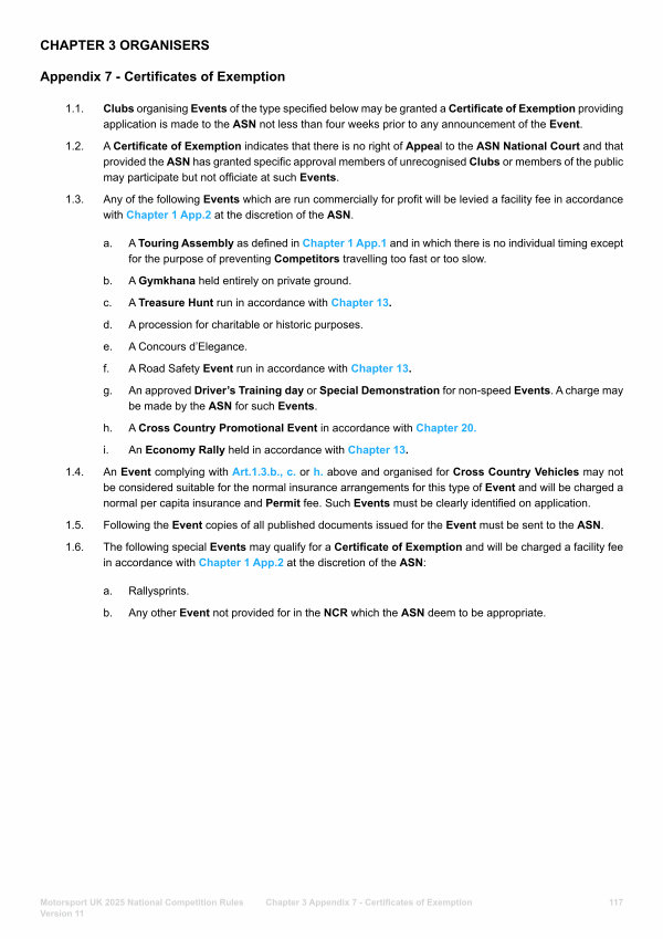 CHAPTER 3 ORGANISERS Appendix 7- Certificates of Exemption