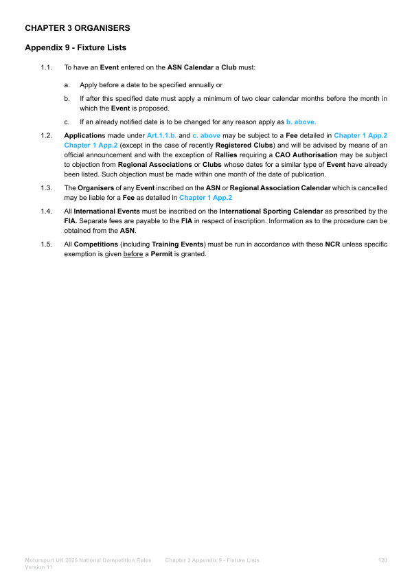 1.3. The Organisers of any Event inscribed on the ASN or Regional Association Calendar which is cancelled may be liable for a Fee as detailed in Chapter 1 App. 2