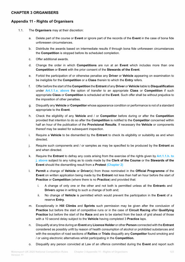 CHAPTER 3 ORGANISERS Appendix 11- Rights of Organisers
