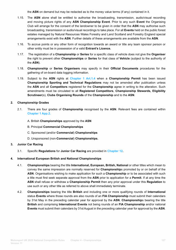 2.1. There are four grades of Championship recognised by the ASN. Relevant fees are contained within Chapter 1 App. 2.
