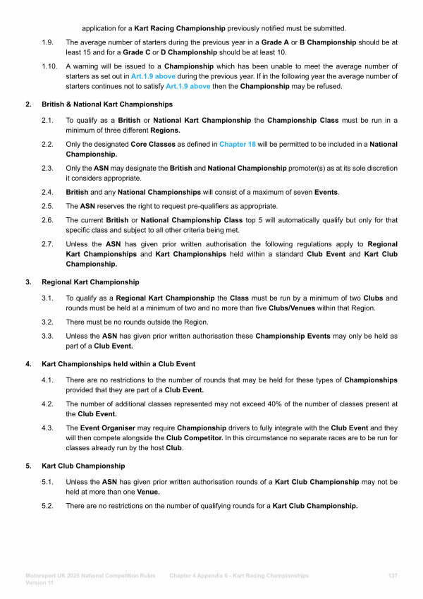 2.1. To qualify as a British or National Kart Championship the Championship Class must be run in a minimum of three different Regions.