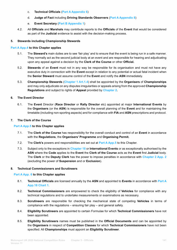 c. Technical Officials( Part A Appendix 6) d. Judge of Fact including Driving Standards Observers( Part A Appendix 8) e. Event Secretary( Part B Appendix 1)