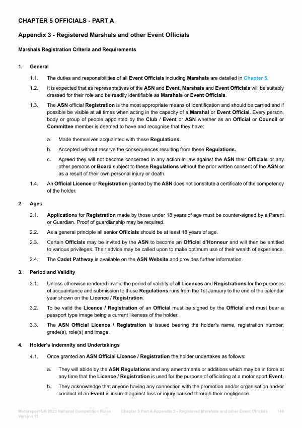 Chapter 5 Part A Appendix 3- Registered Marshals and other Event Officials 148