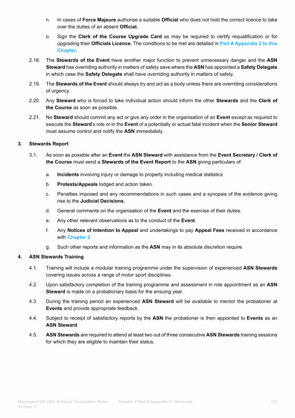 3.1. As soon as possible after an Event the ASN Steward with assistance from the Event Secretary / Clerk of the Course must send a Stewards of the Event Report to the ASN giving particulars of: