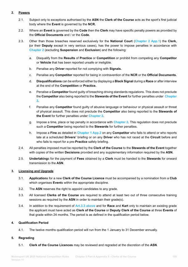 Chapter 5 Part A Appendix 5- Clerks of the Course 155
