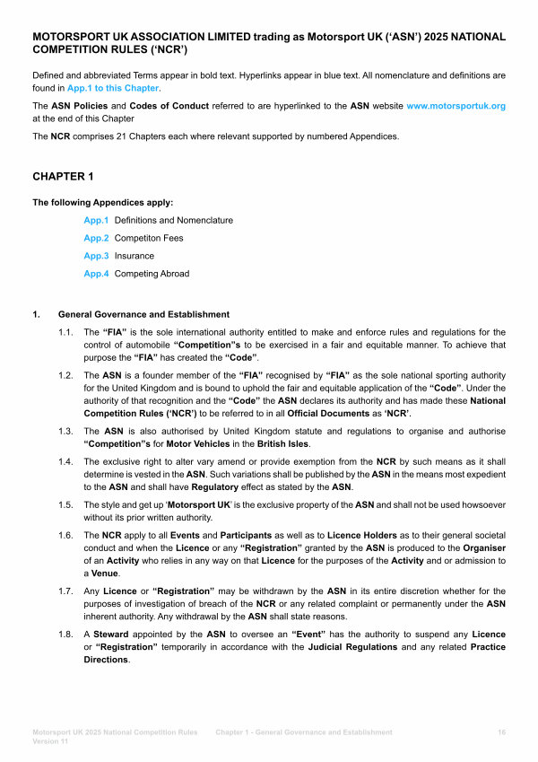 The ASN Policies and Codes of Conduct referred to are hyperlinked to the ASN website www. motorsportuk. org at the end of this Chapter