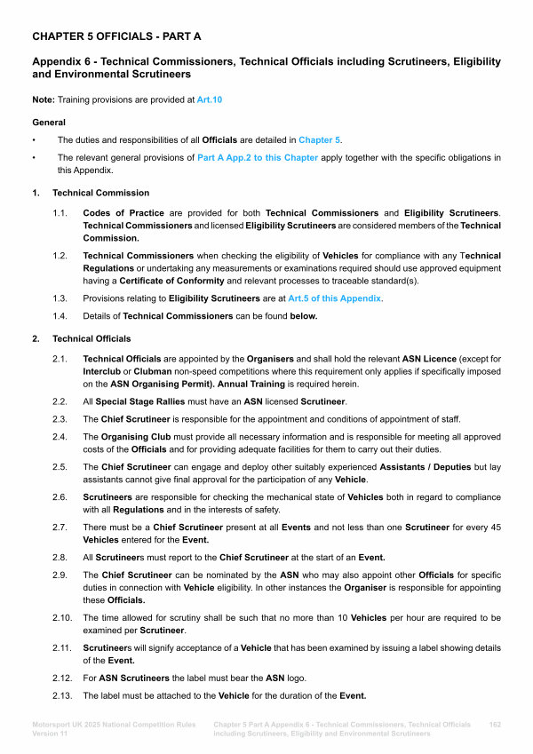 Chapter 5 Part A Appendix 6- Technical Commissioners, Technical Officials including Scrutineers, Eligibility and Environmental Scrutineers