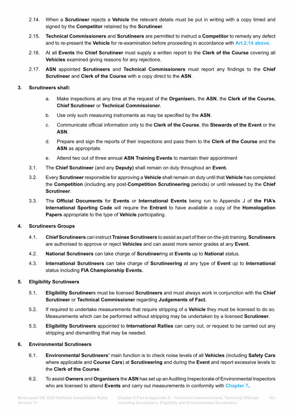 Chapter 5 Part A Appendix 6- Technical Commissioners, Technical Officials including Scrutineers, Eligibility and Environmental Scrutineers