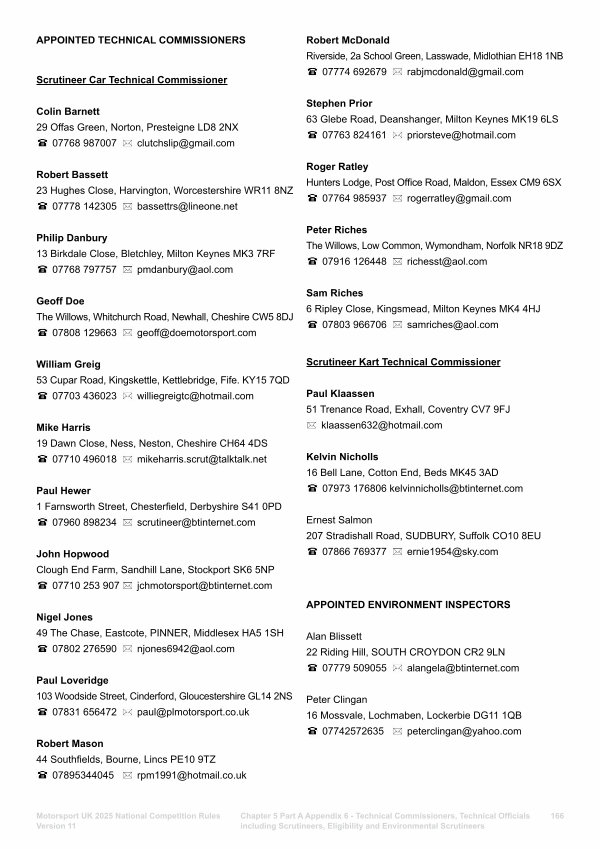 Chapter 5 Part A Appendix 6- Technical Commissioners, Technical Officials including Scrutineers, Eligibility and Environmental Scrutineers