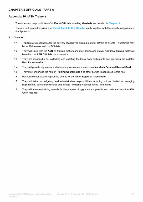 CHAPTER 5 OFFICIALS- PART A Appendix 16- ASN Trainers