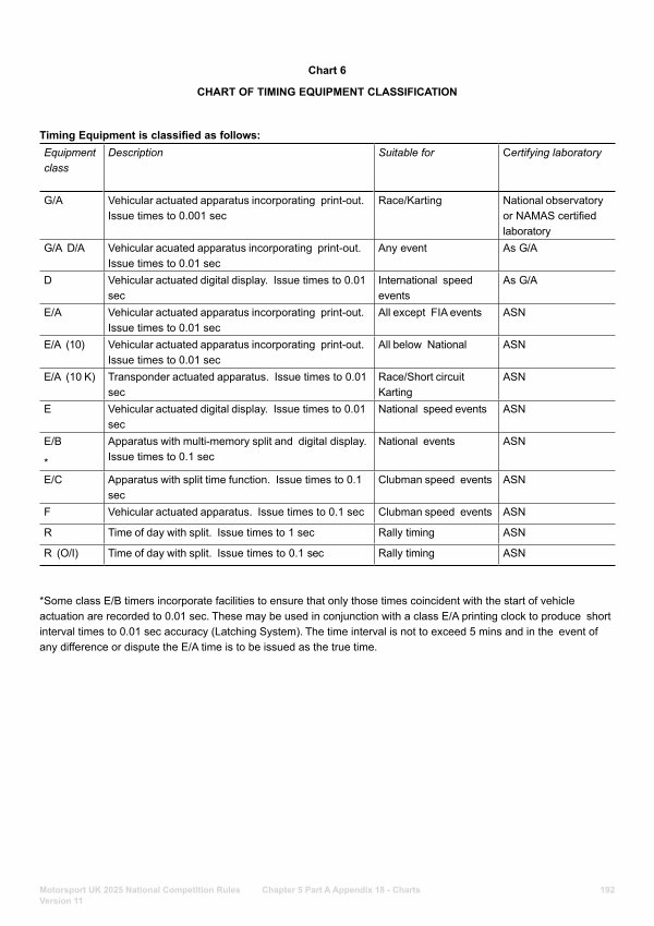 Chart 6 CHART OF TIMING EQUIPMENT CLASSIFICATION