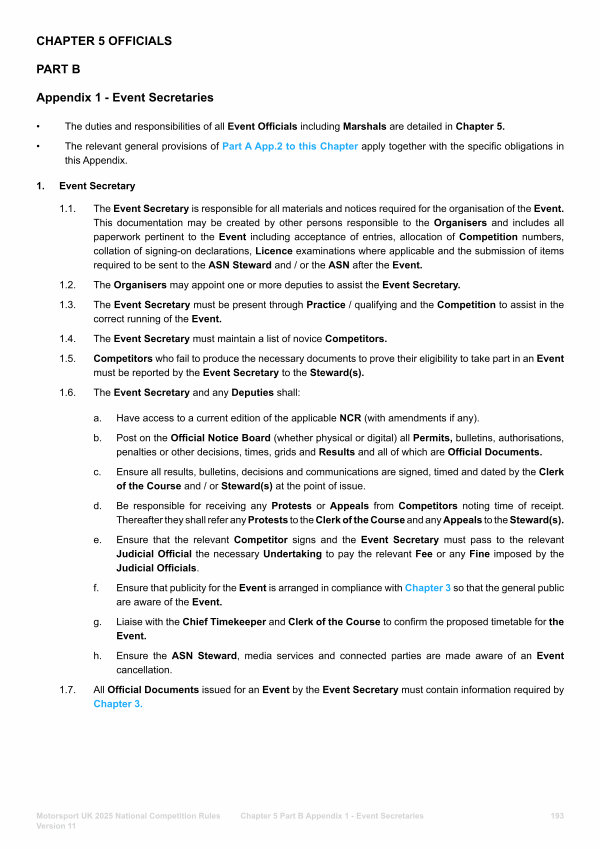 • The duties and responsibilities of all Event Officials including Marshals are detailed in Chapter 5.