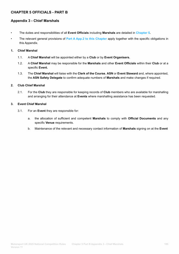 CHAPTER 5 OFFICIALS- PART B Appendix 3- Chief Marshals