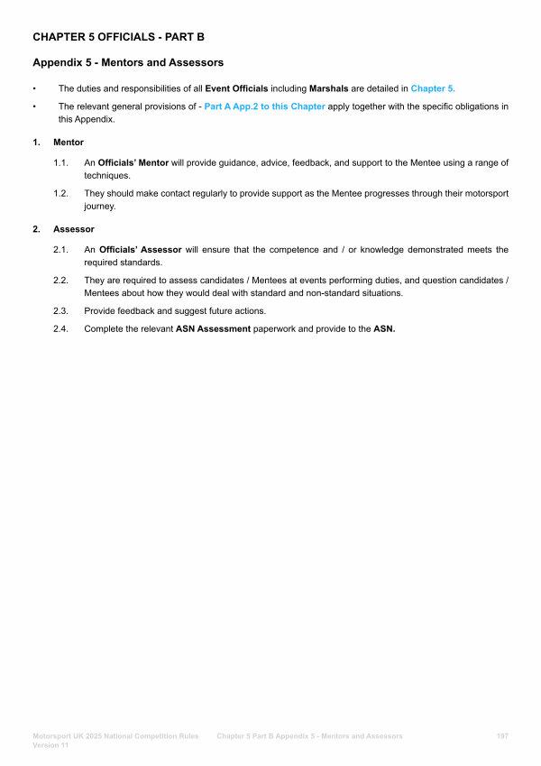 CHAPTER 5 OFFICIALS- PART B Appendix 5- Mentors and Assessors