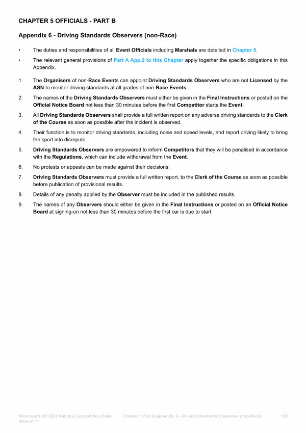 CHAPTER 5 OFFICIALS- PART B Appendix 6- Driving Standards Observers( non-Race)