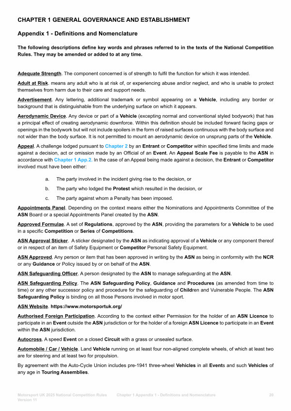 ASN Safeguarding Policy. The ASN Safeguarding Policy, Guidance and Procedures( as amended from time to time) or any other successor policy and procedure for the safeguarding of Children and Vulnerable People. The ASN Safeguarding Policy is binding on all those Persons involved in motor sport.