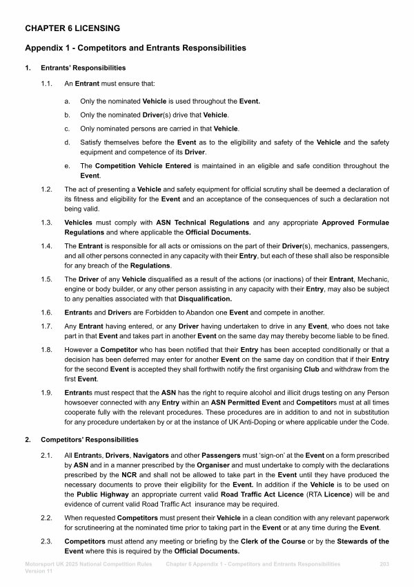 Chapter 6 Appendix 1- Competitors and Entrants Responsibilities 203