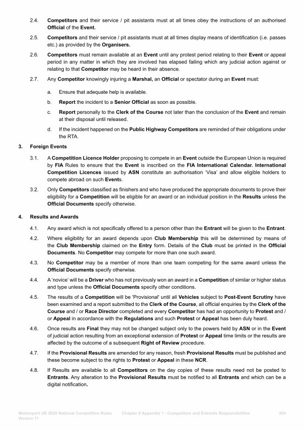 Chapter 6 Appendix 1- Competitors and Entrants Responsibilities 204