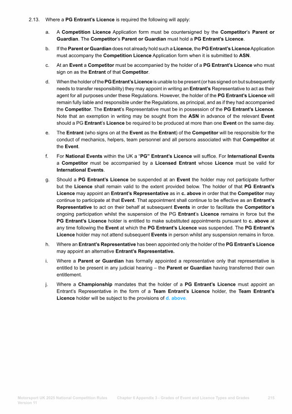 2.13. Where a PG Entrant’ s Licence is required the following will apply: