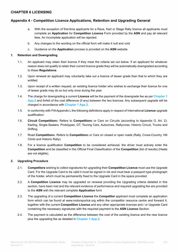 Chapter 6 Appendix 4- Competition Licence Applications, Retention and Upgrading- General
