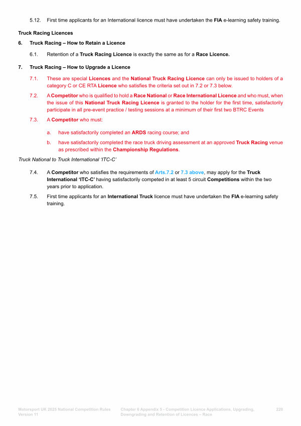 6.1. Retention of a Truck Racing Licence is exactly the same as for a Race Licence.