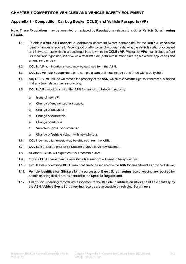 Chapter 7 Appendix 1- Competition Car Log Books( CCLB) and Vehicle Passports( VP)