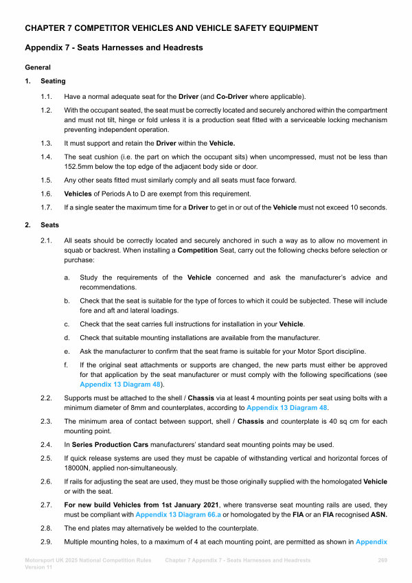 CHAPTER 7 COMPETITOR VEHICLES AND VEHICLE SAFETY EQUIPMENT Appendix 7- Seats Harnesses and Headrests