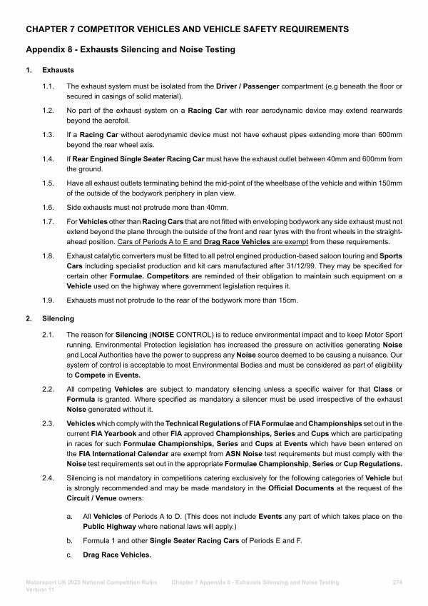 CHAPTER 7 COMPETITOR VEHICLES AND VEHICLE SAFETY REQUIREMENTS Appendix 8- Exhausts Silencing and Noise Testing