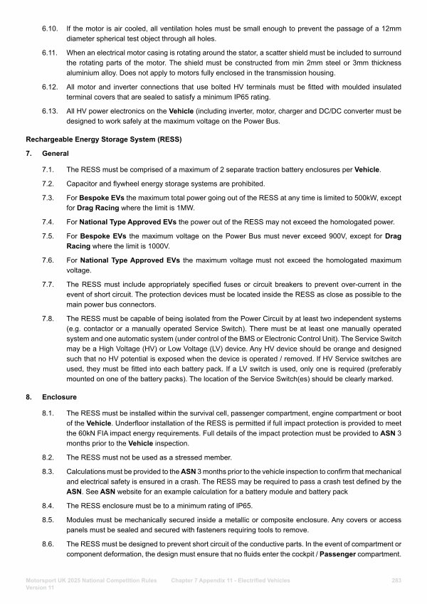 7.5. For Bespoke EVs the maximum voltage on the Power Bus must never exceed 900V, except for Drag Racing where the limit is 1000V.