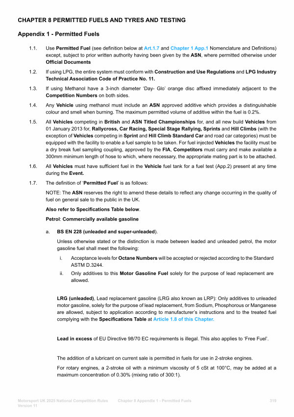 CHAPTER 8 PERMITTED FUELS AND TYRES AND TESTING Appendix 1- Permitted Fuels