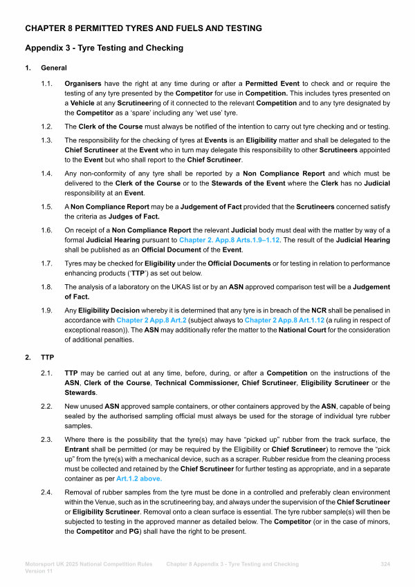 1.2. The Clerk of the Course must always be notified of the intention to carry out tyre checking and or testing.