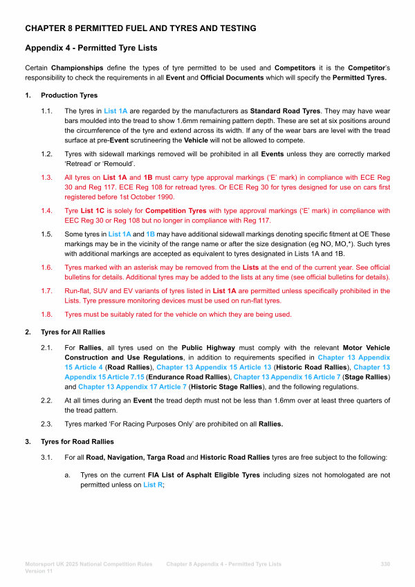 Chapter 8 Appendix 4- Permitted Tyre Lists 330