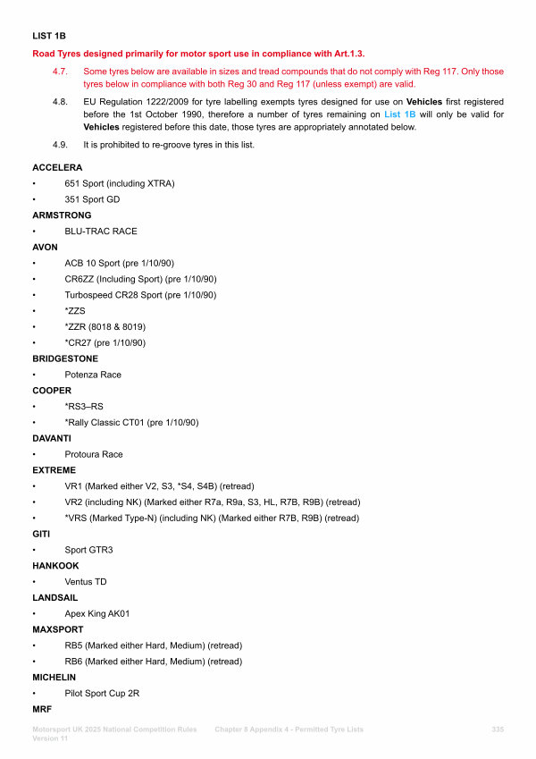 Chapter 8 Appendix 4- Permitted Tyre Lists 335