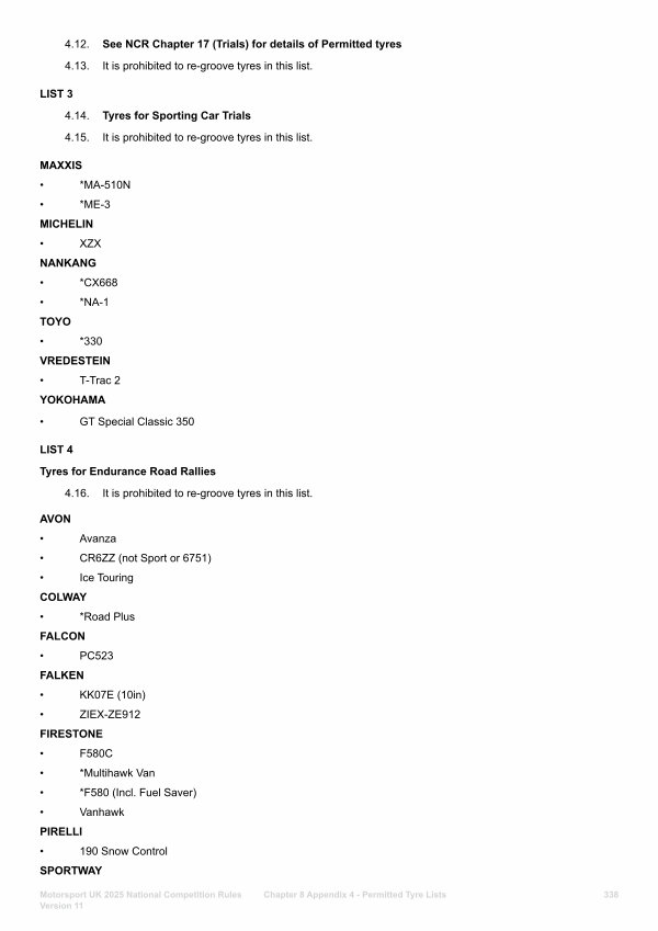 Chapter 8 Appendix 4- Permitted Tyre Lists 338