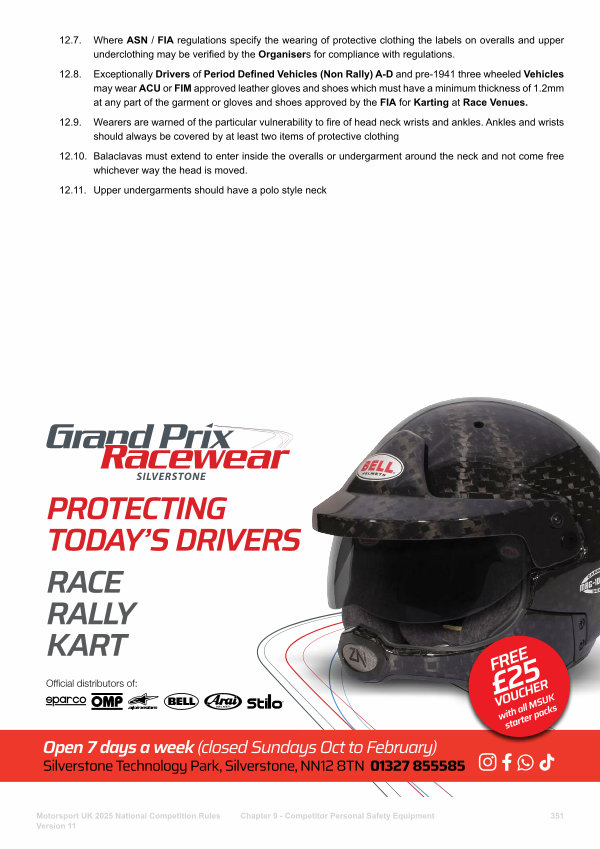 12.7. Where ASN / FIA regulations specify the wearing of protective clothing the labels on overalls and upper underclothing may be verified by the Organisers for compliance with regulations.
