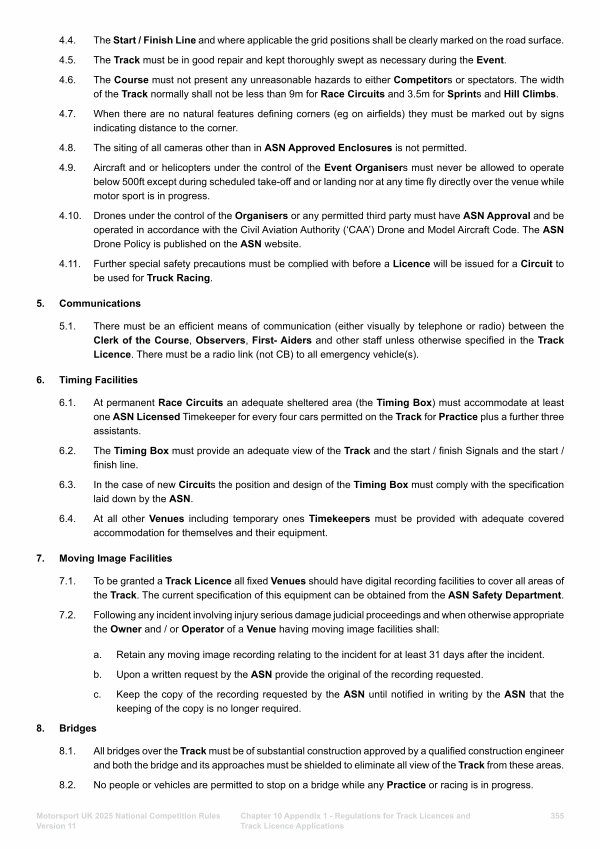 7.1. To be granted a Track Licence all fixed Venues should have digital recording facilities to cover all areas of the Track. The current specification of this equipment can be obtained from the ASN Safety Department.