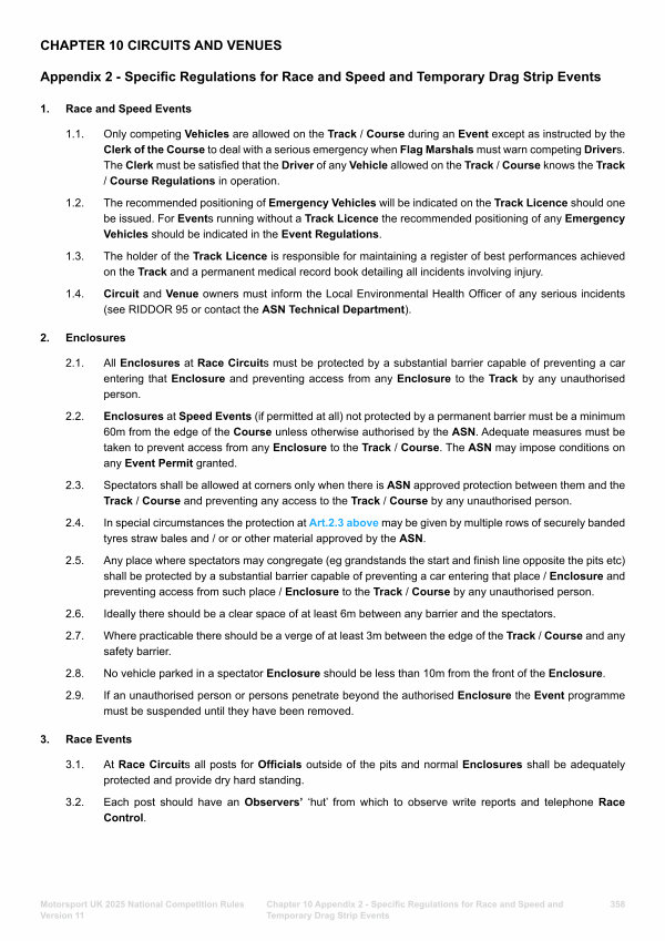 Chapter 10 Appendix 2- Specific Regulations for Race and Speed and Temporary Drag Strip Events