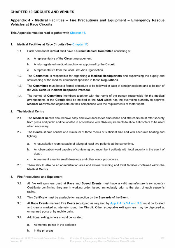 Chapter 10 Appendix 4- Medical Facilities – Fire Precautions and Equipment – Emergency Rescue Vehicles at Race Circuits