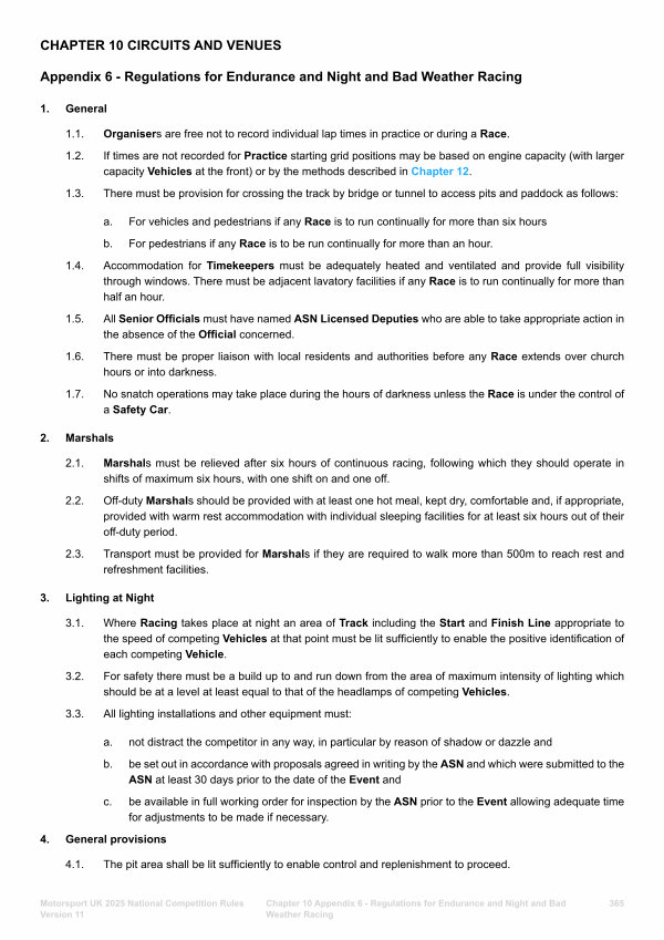 Chapter 10 Appendix 6- Regulations for Endurance and Night and Bad Weather Racing
