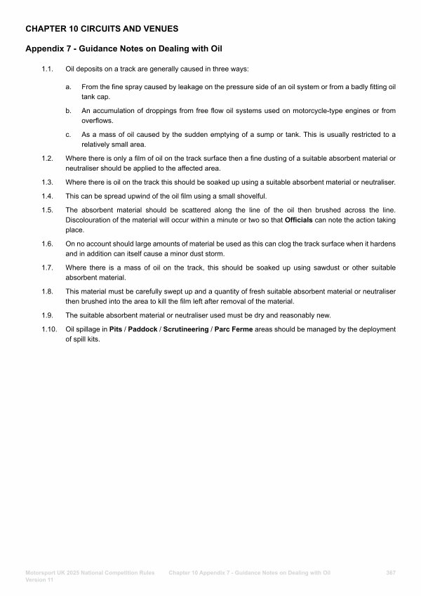 CHAPTER 10 CIRCUITS AND VENUES Appendix 7- Guidance Notes on Dealing with Oil