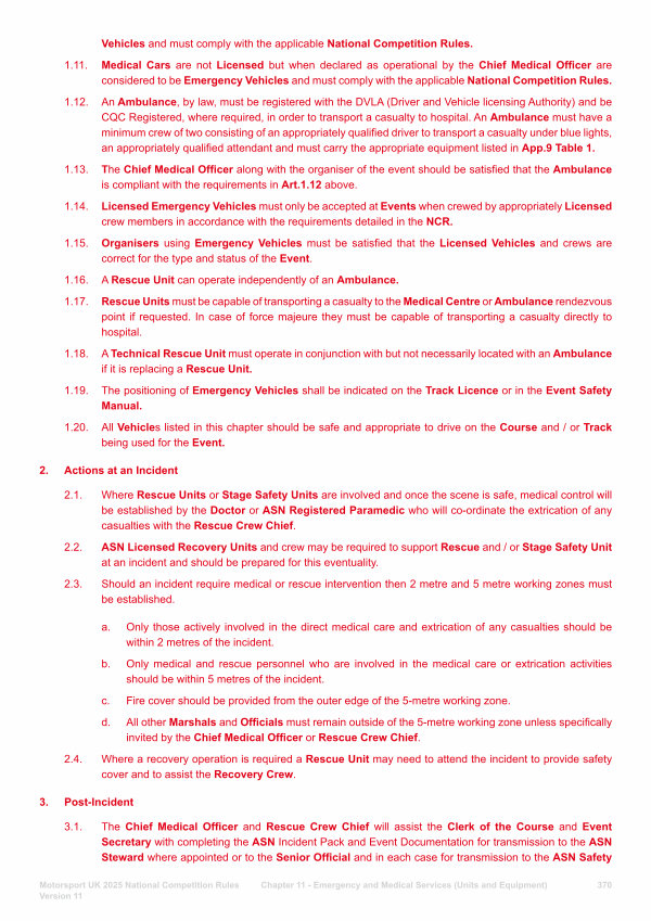 1.15. Organisers using Emergency Vehicles must be satisfied that the Licensed Vehicles and crews are correct for the type and status of the Event.