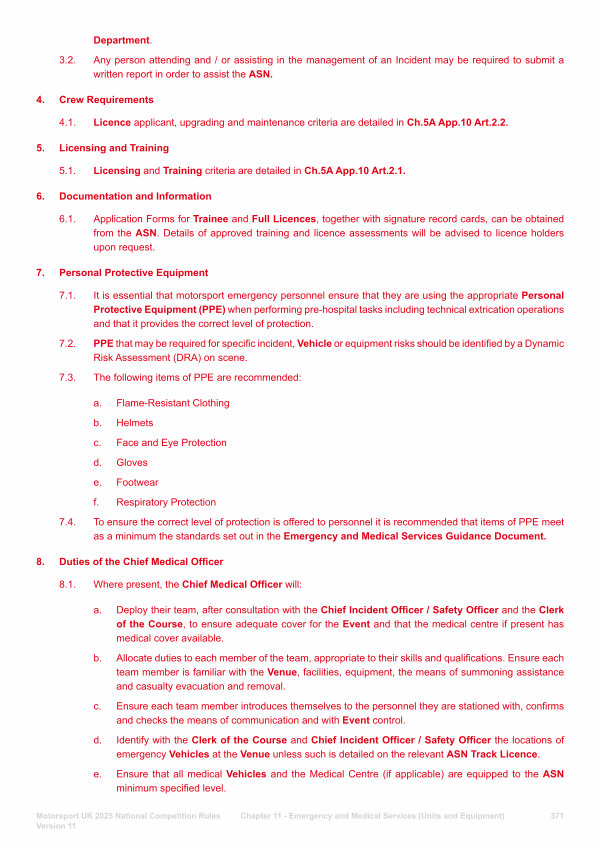 7.1. It is essential that motorsport emergency personnel ensure that they are using the appropriate Personal Protective Equipment( PPE) when performing pre-hospital tasks including technical extrication operations and that it provides the correct level of protection.