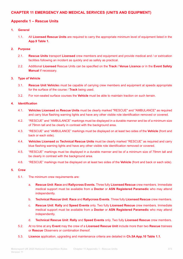 2.2. Additional Licensed Rescue Units can be specified on the Track / Venue Licence or in the Event Safety Manual if necessary.